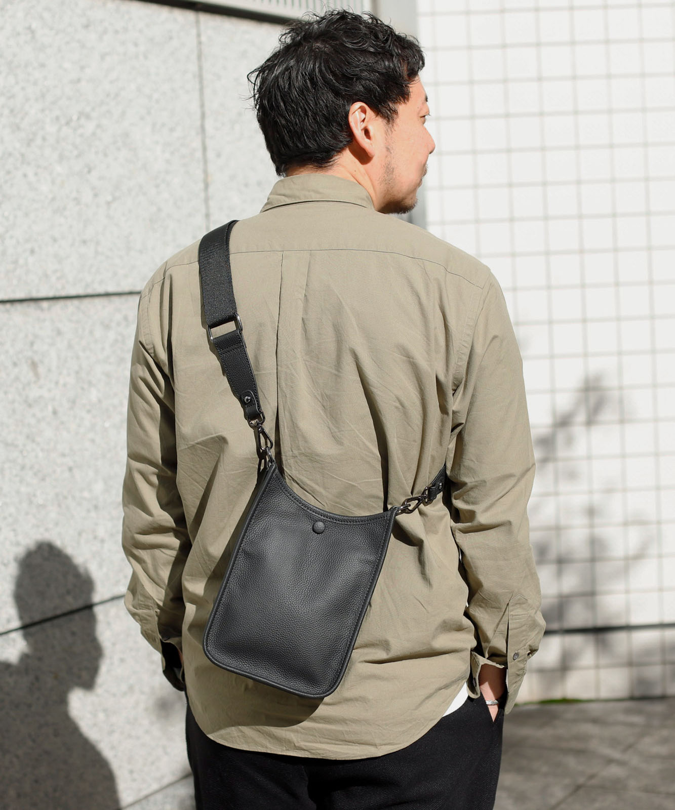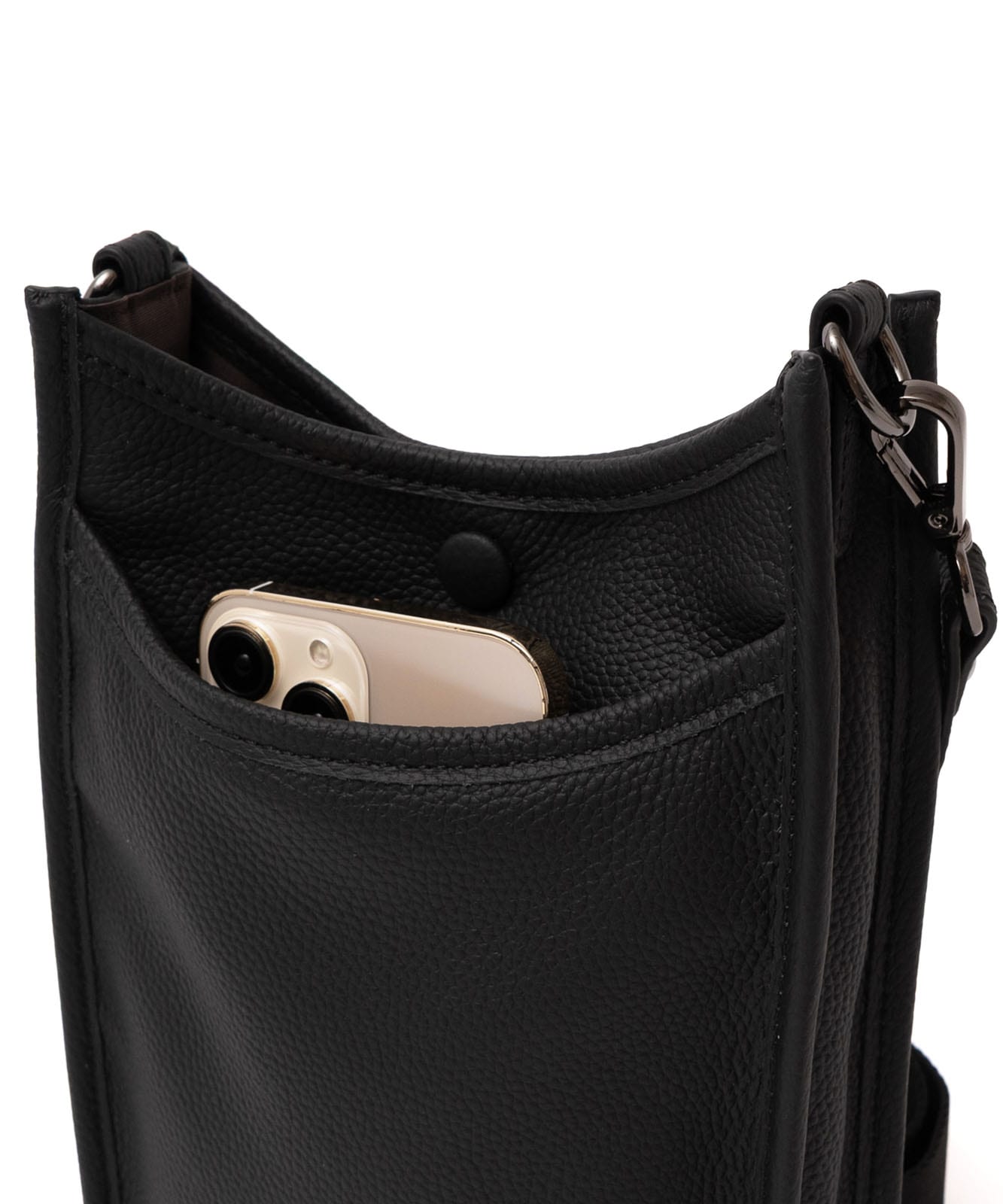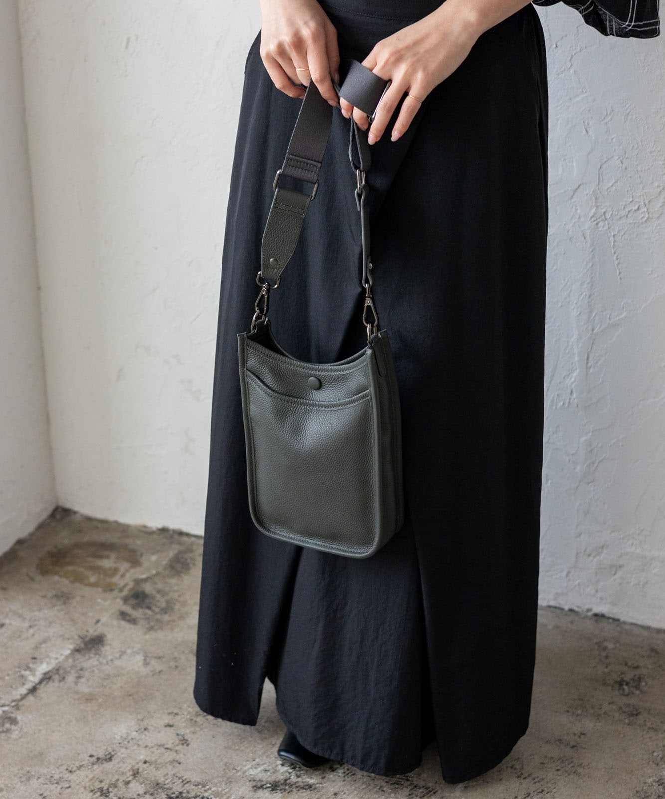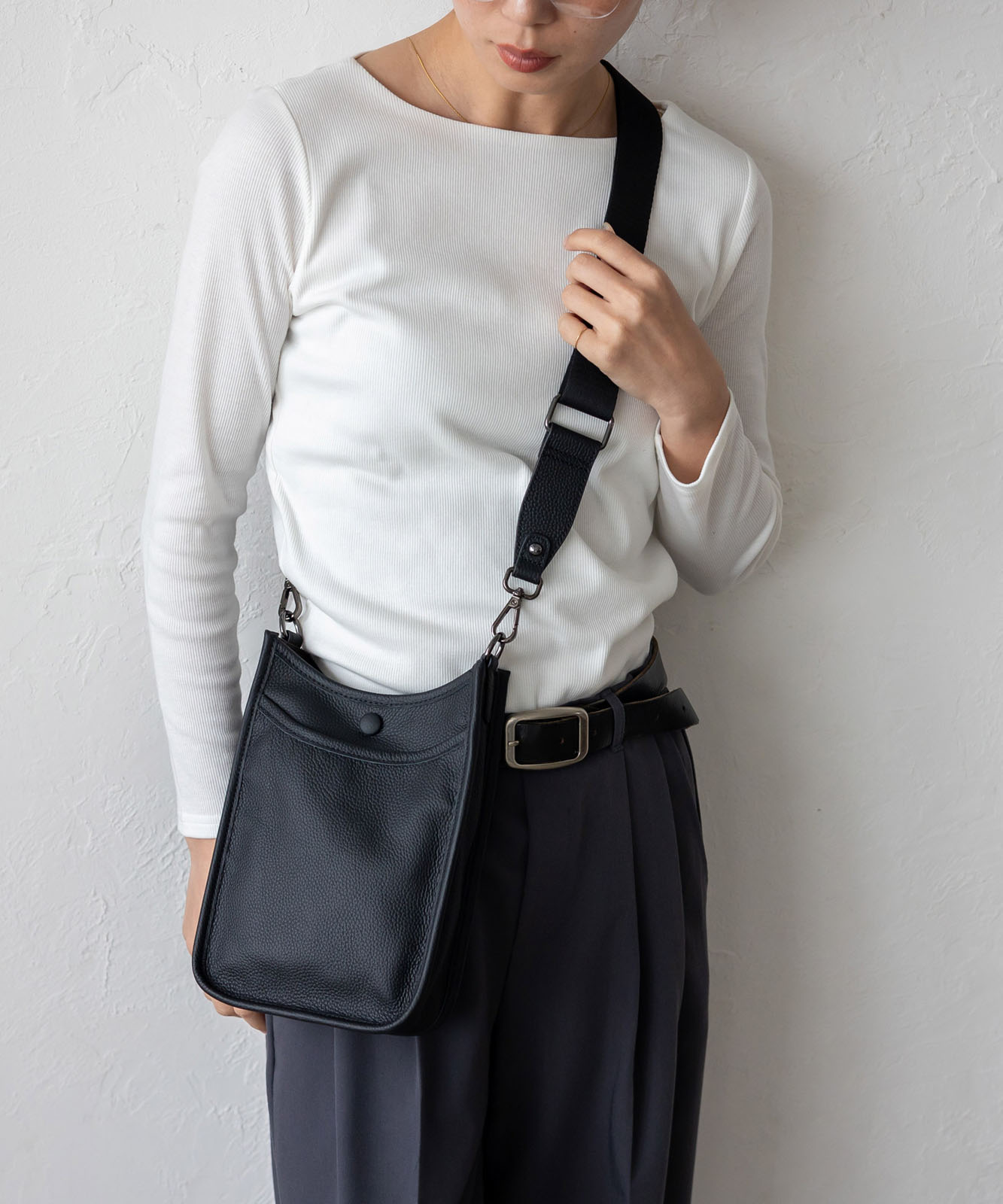 贅沢に本牛革を使用したレザーショルダー。