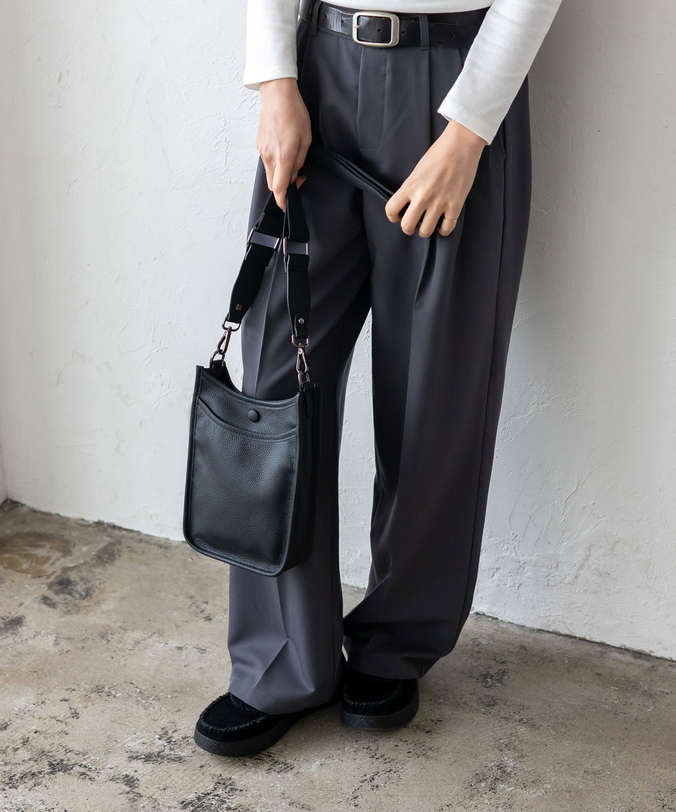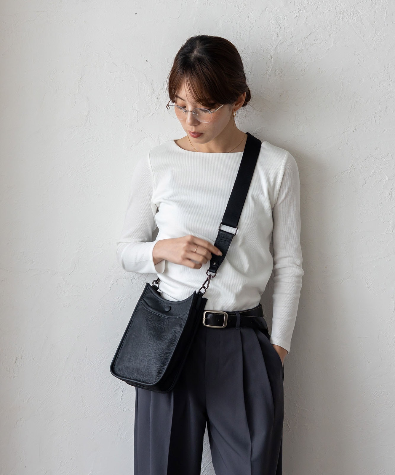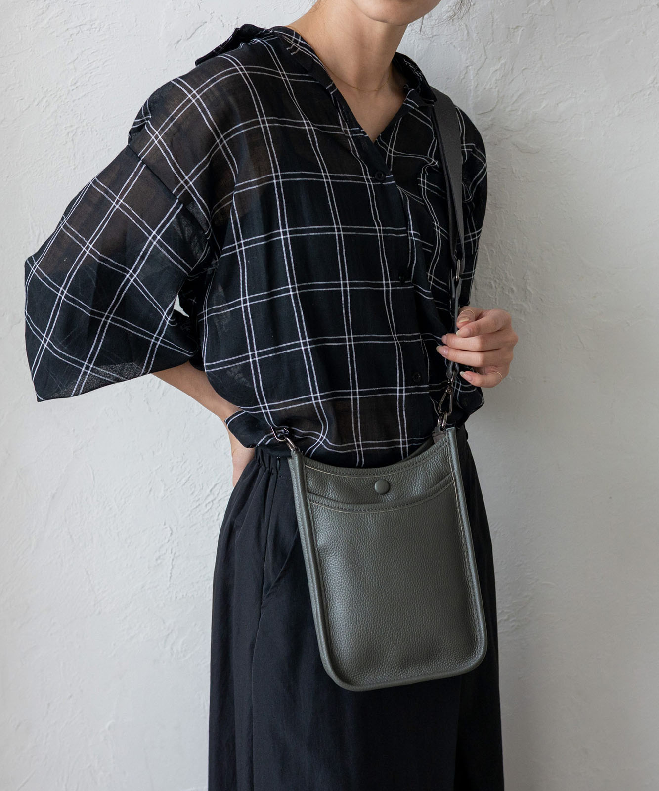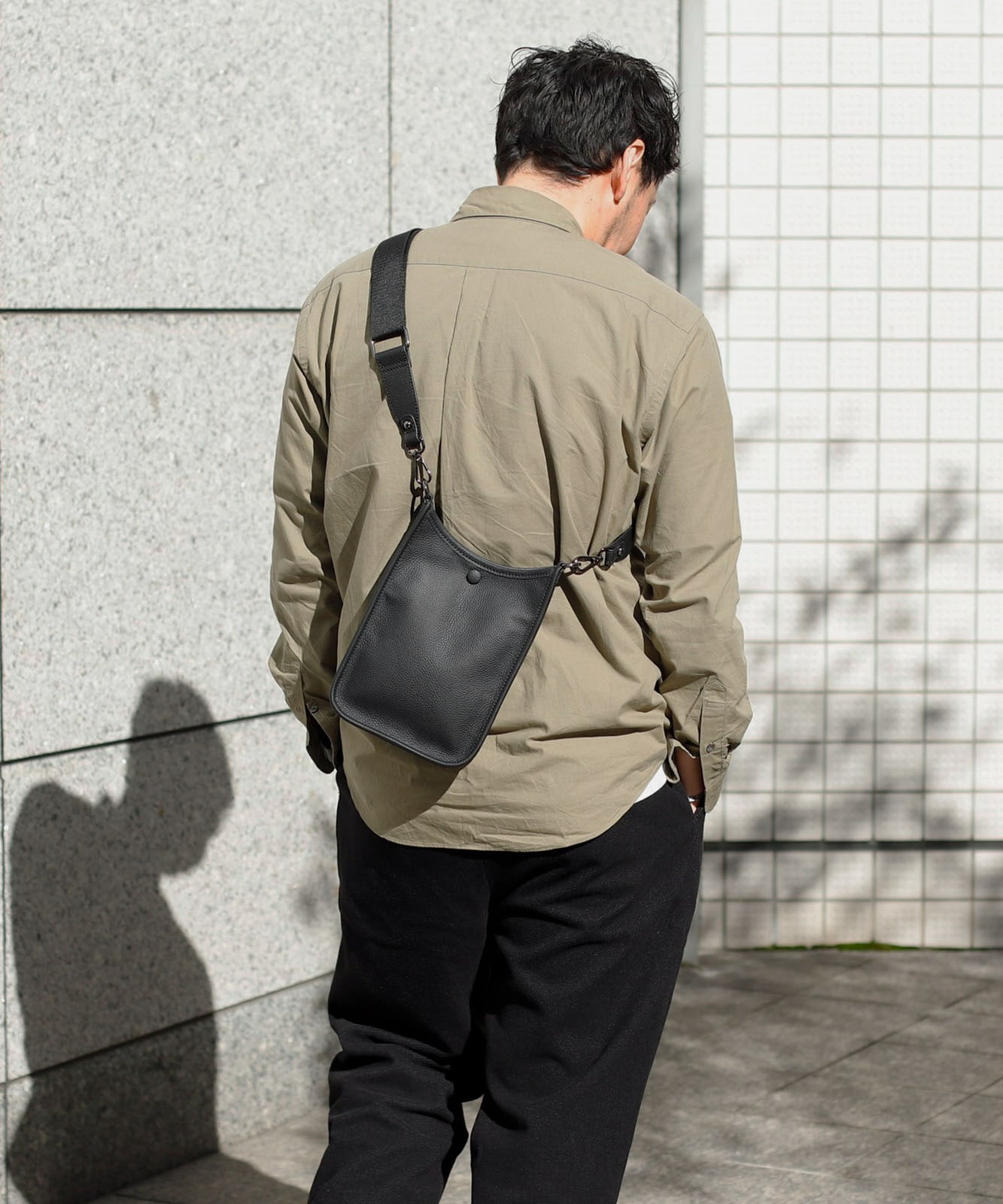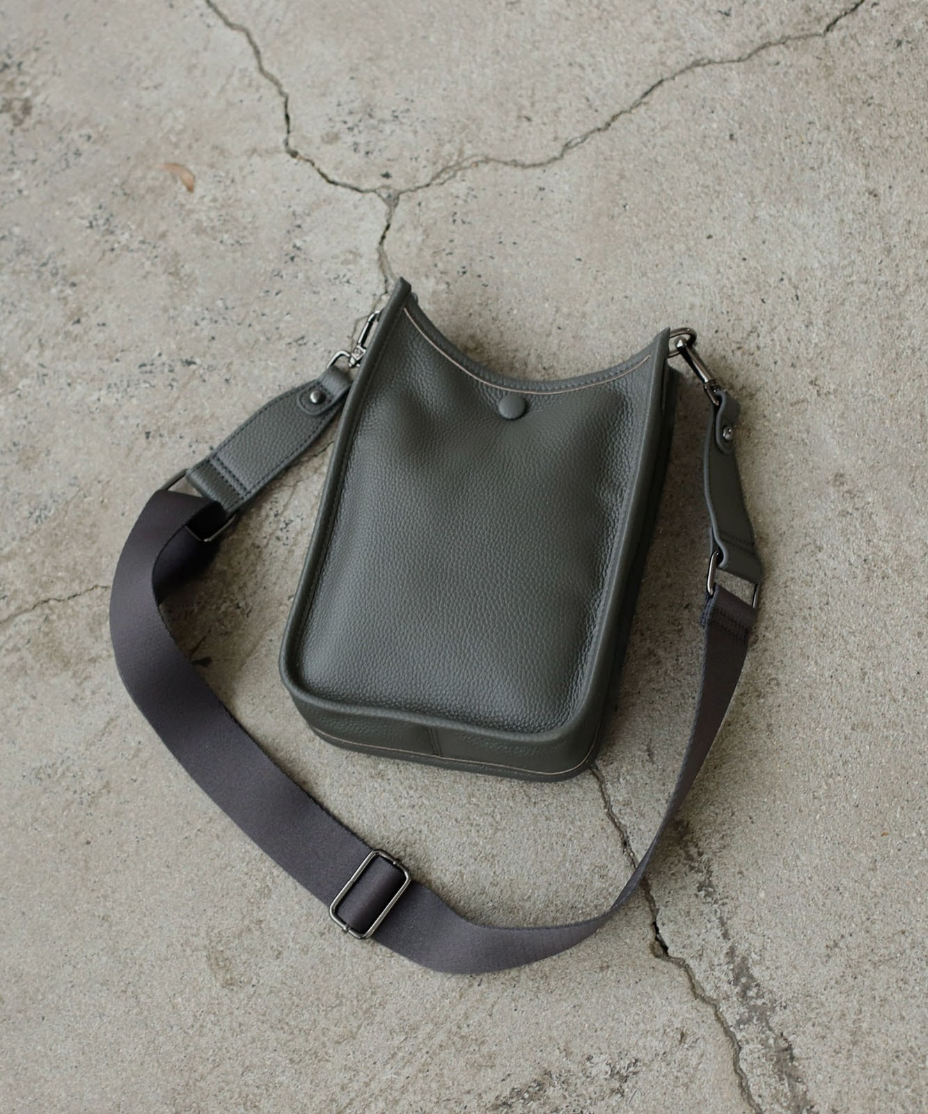 贅沢に本牛革を使用したレザーショルダー。