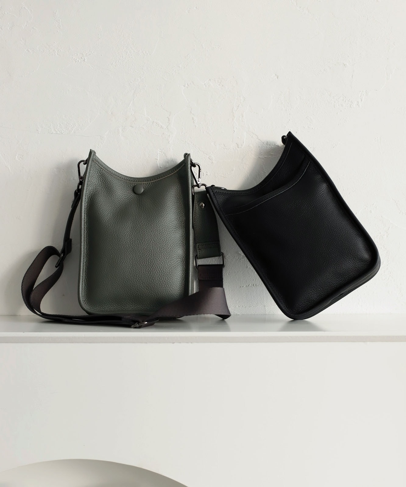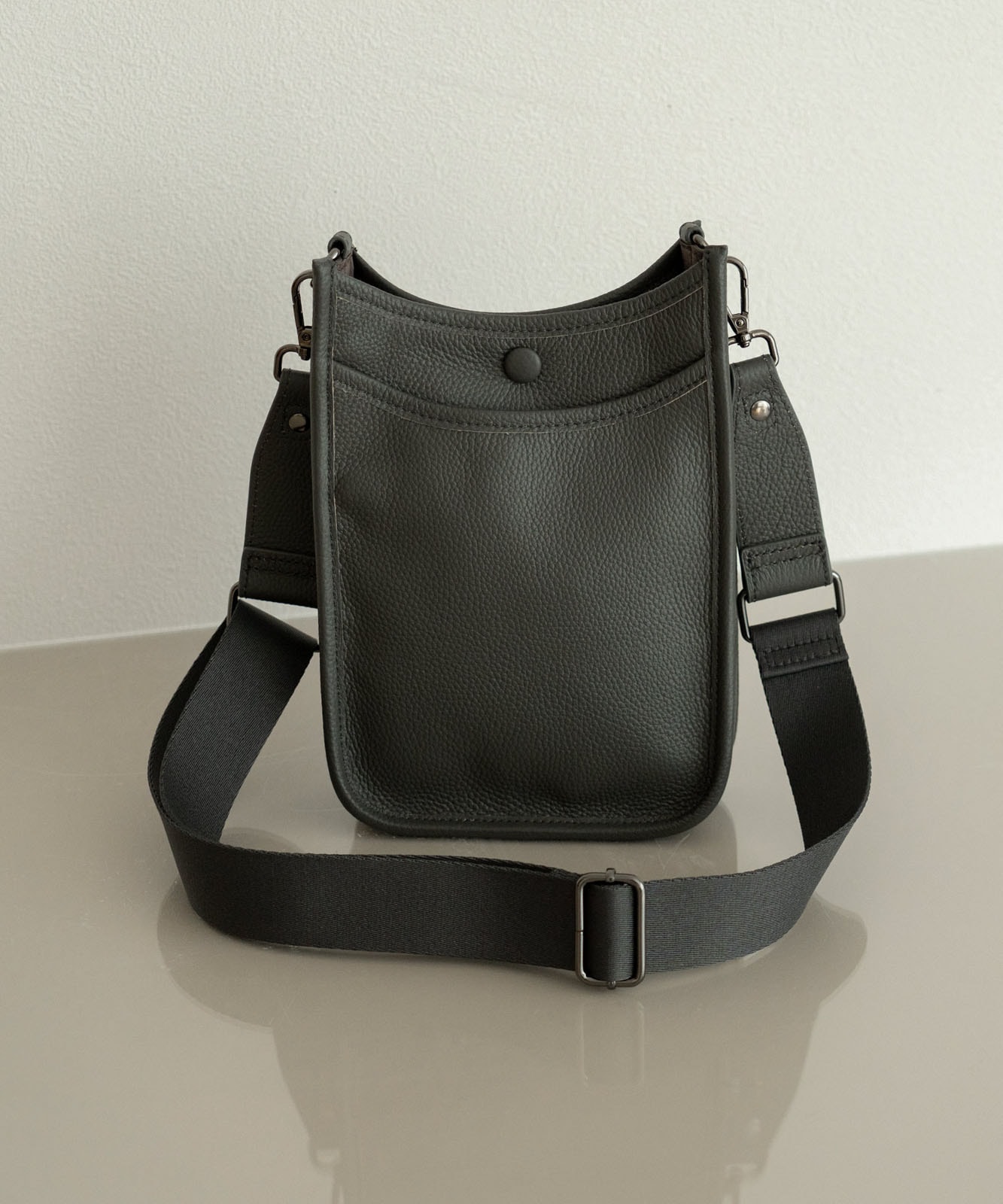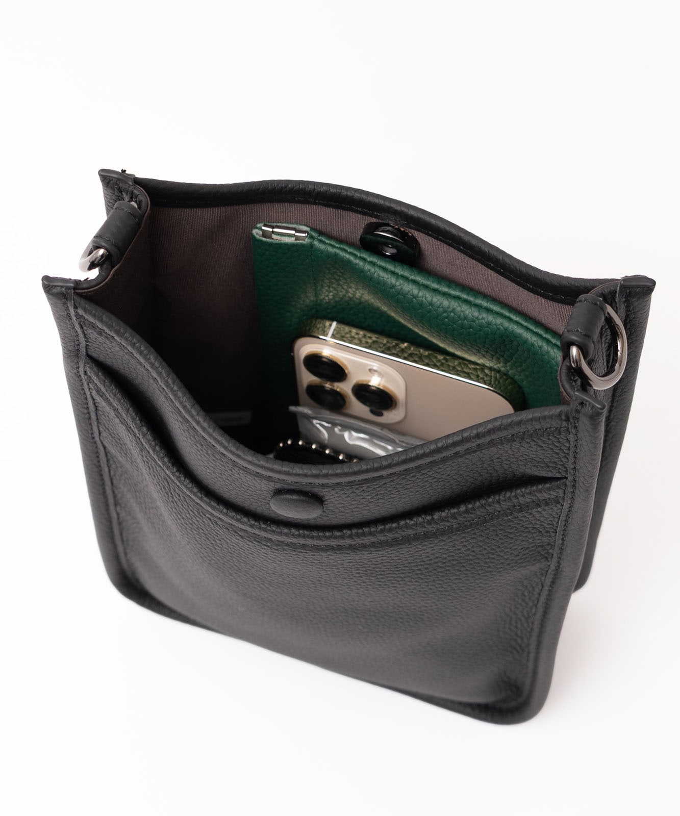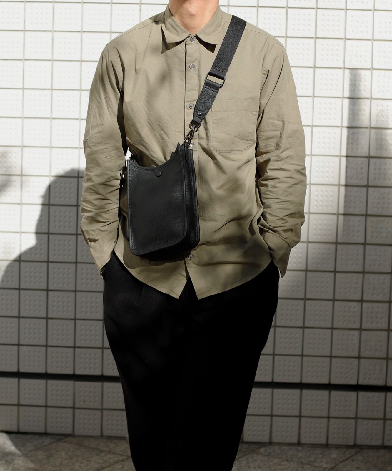贅沢に本牛革を使用したレザーショルダー。