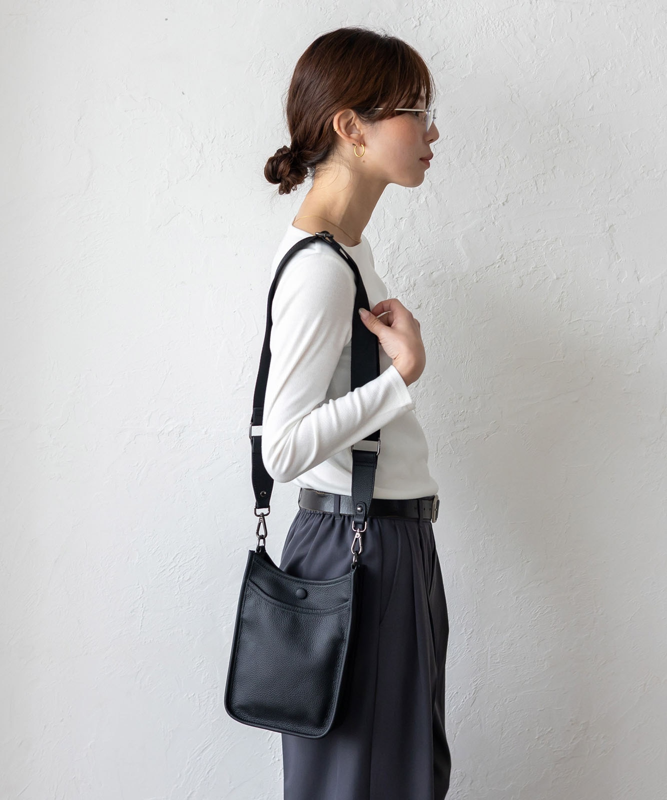 幅3.8cmのワイドショルダーは調節可能。