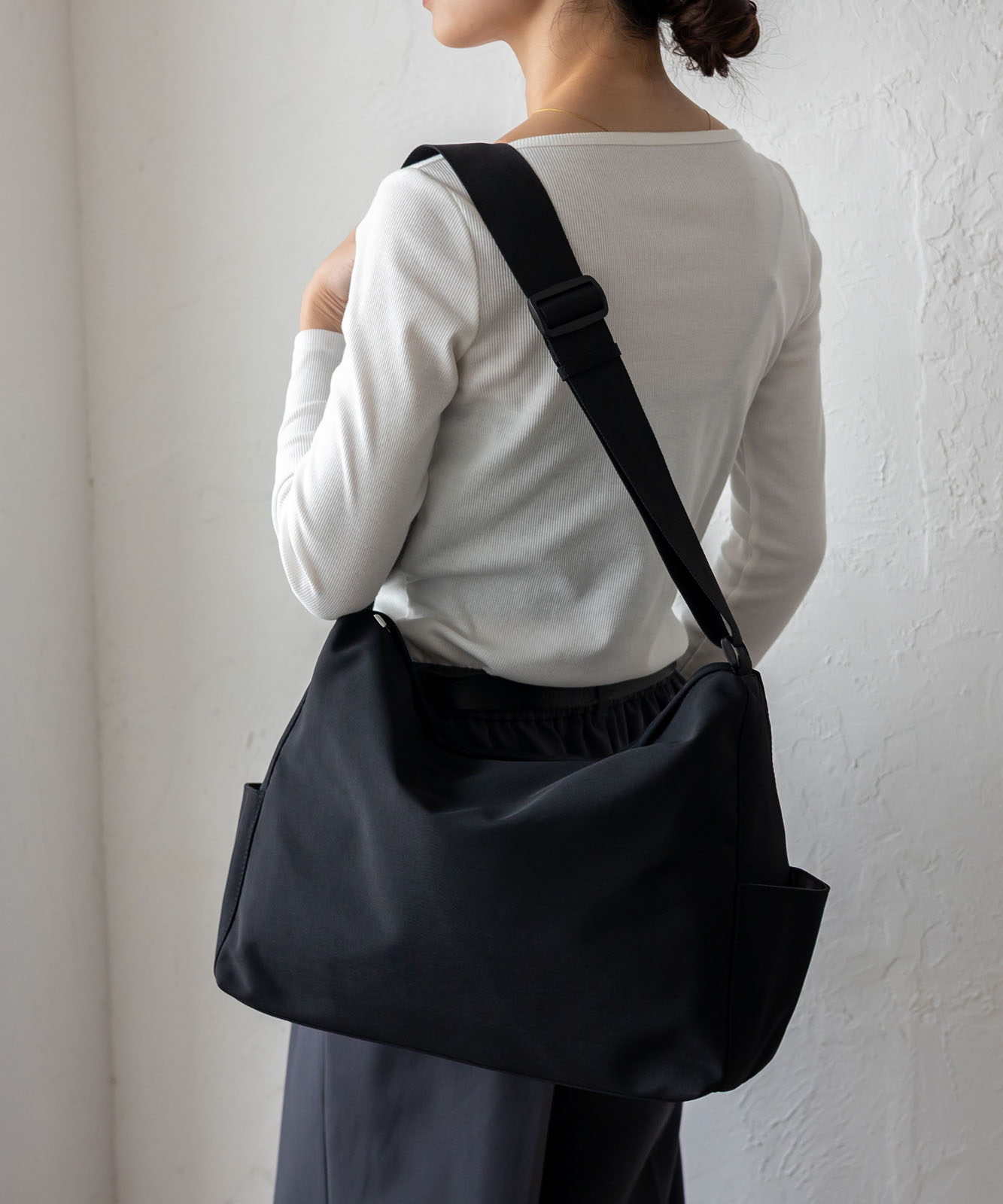 シンプルな見た目に、使いやすさをしっかり備えたナイロンショルダーバッグ。